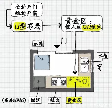 聊了那么多原理和數(shù)字,可能你已經(jīng)有點(diǎn)暈了,很正常,畢竟廚房是家中最復(fù)雜的空間,沒有之一!這里就推薦一款我覺得最合理的廚房布局:
