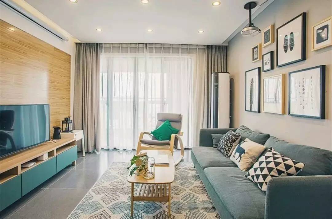 現(xiàn)在很多人都會在家里安裝投影儀,一到周末,可以和家人朋友一起看看電影。原木亮色的電視背景墻和掛畫裝飾的沙發(fā)背景墻,使得整個客廳既時尚又舒適。