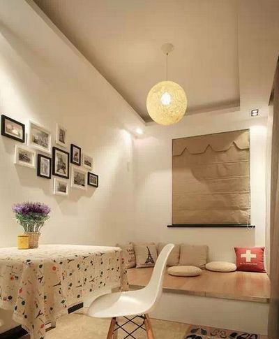 對于小戶型來說,設(shè)計榻榻米是一種不錯的選擇,臨窗而建的榻榻米,占去了餐廳里的一部分空間,但是它色調(diào)清新,素雅大方,也不顯得空間擁擠,等于在餐廳里開拓出一塊休閑區(qū),如果有客人來了,也能做客房。