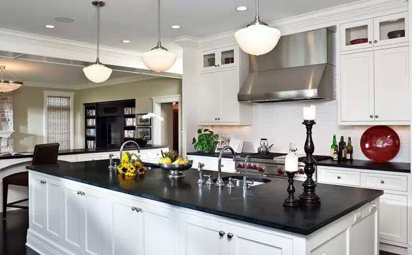 廚房臺面可以選擇石板臺面,石板臺面的硬度比花崗巖要低一些,它也是一種天然石材,表面相對粗糙,它的好處是容易清潔,可以直接拿水洗,但是它容易滋生細(xì)菌,這點(diǎn)要注意。