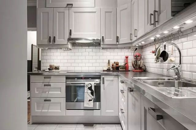 和總體面積相比,廚房還是非常大的。功能齊全,收納也非常強(qiáng)大。不銹鋼的定制櫥柜,耐用好清潔。