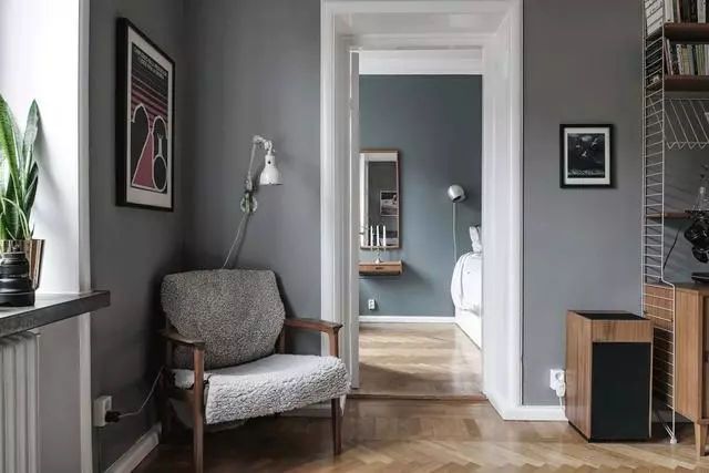 通向臥室的門(mén)口,在門(mén)邊轉(zhuǎn)角的地方放上一把休閑的椅子,一開(kāi)始這里沒(méi)有設(shè)計(jì),現(xiàn)在只能放個(gè)拖線的燈。