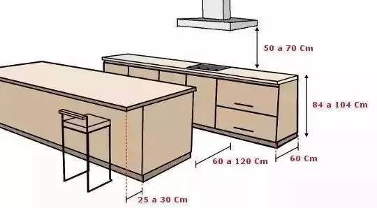 如果你家有廚房島臺(tái),那么操作臺(tái)到廚房島臺(tái)的距離一般在60-120cm,具體還要考慮實(shí)際的空間大小。