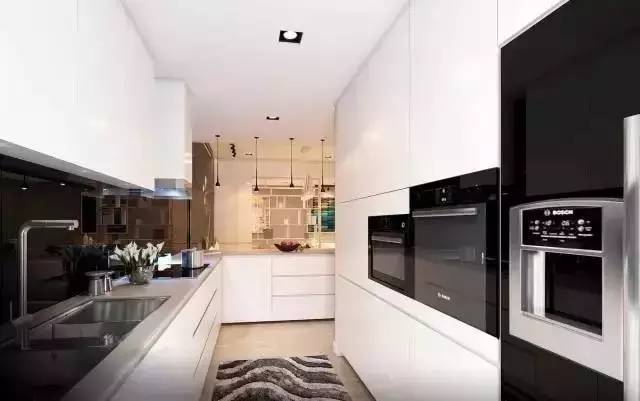 這在小戶(hù)型中比較多見(jiàn),因?yàn)榫嚯x比較長(zhǎng),想要有效提高效率,可以選擇用墻壁掛件和吊柜。