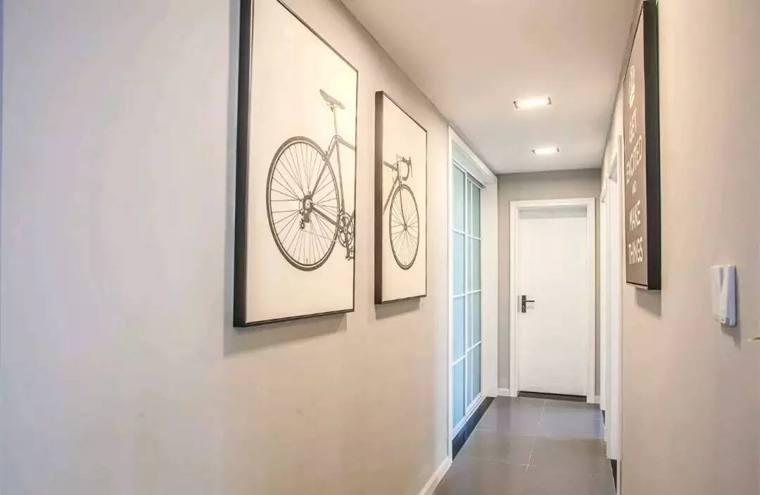 在進(jìn)門的過道用掛畫作了裝飾,雖然是簡單的黑白掛畫,但是整個白色墻面看起來還是豐富了不少啊,可以說裝飾點綴的恰到好處。