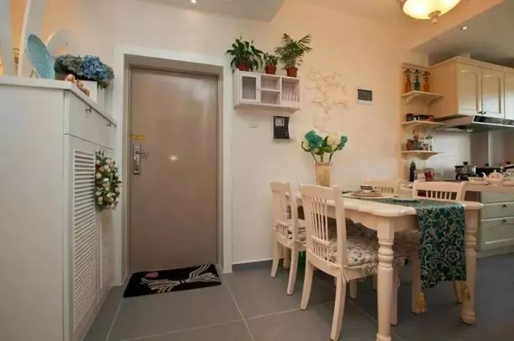 ▲進(jìn)門處直接是餐廳,鞋柜隔斷了客廳和其他空間。