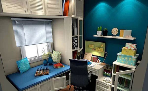 書房設(shè)計榻榻米是很實用的,榻榻米可以做休閑區(qū)間,平時可以坐在書桌臺前看書,也可以在榻榻米上閱讀休閑,如果工作累了,還可以倚靠在榻榻米上休息一會,清新又實用。