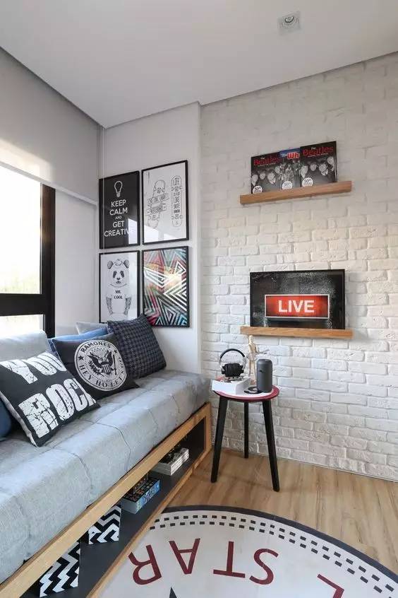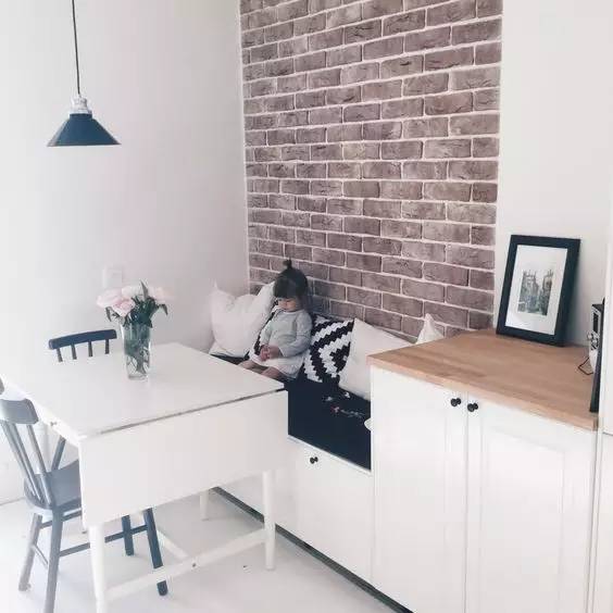 相比其他磚墻粗獷不羈的個性而言,瓷質(zhì)磚的表面更加平滑,鋪裝起來也更為方便,為整個居室的顏值加分不少。