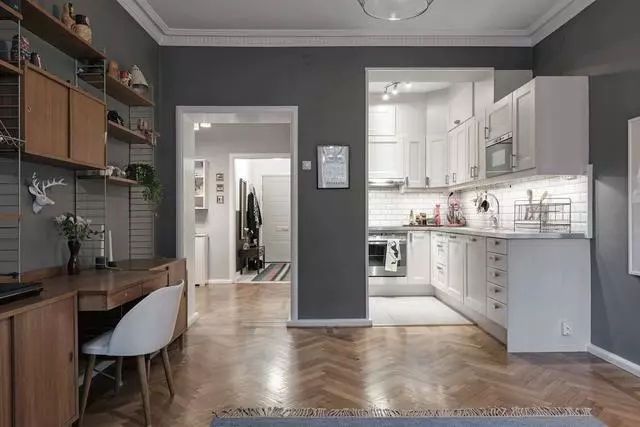 一目了然的空間,卻分區(qū)明確。讓本來(lái)的一個(gè)大開(kāi)間有了精致的感覺(jué)。和餐桌配套的小書(shū)桌,讓家里多了一個(gè)辦公的空間。