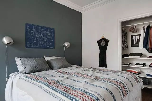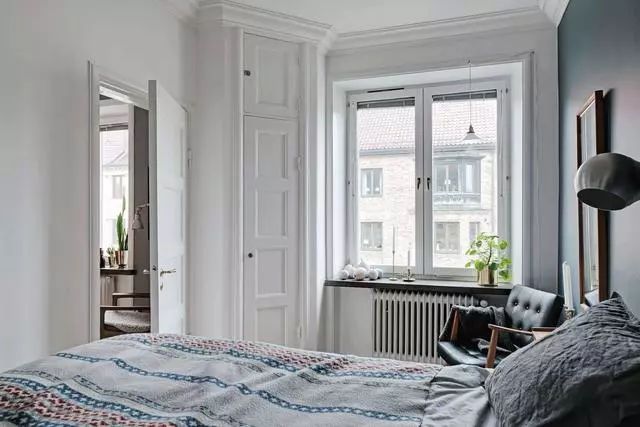 走進(jìn)臥室最吸引眼球的怕是這個(gè)鑲?cè)胧降囊鹿窳?,不僅可以掛衣服,還是一個(gè)收納寶地呢。因?yàn)檫M(jìn)門(mén)玄關(guān)那里有一個(gè)小的儲(chǔ)藏間,所以臥室只需要收納日常常用的衣物就好了。